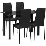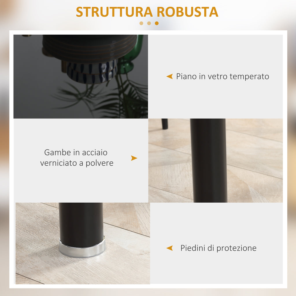 Set da Pranzo Tavolo e 4 Sedie Seduta Imbottita in Vetro Temperato e Acciaio Nero