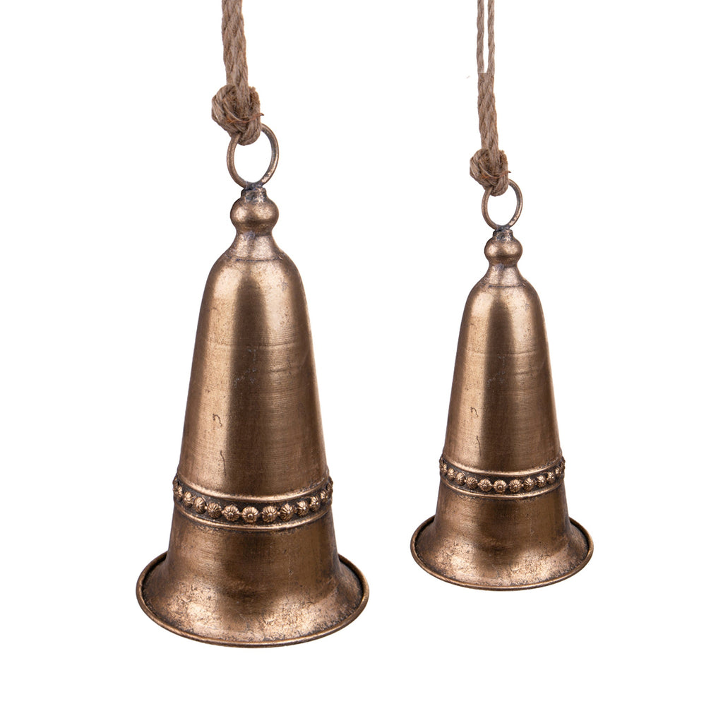 Lot de 2 Cloches avec Frise 32 cm Champagne