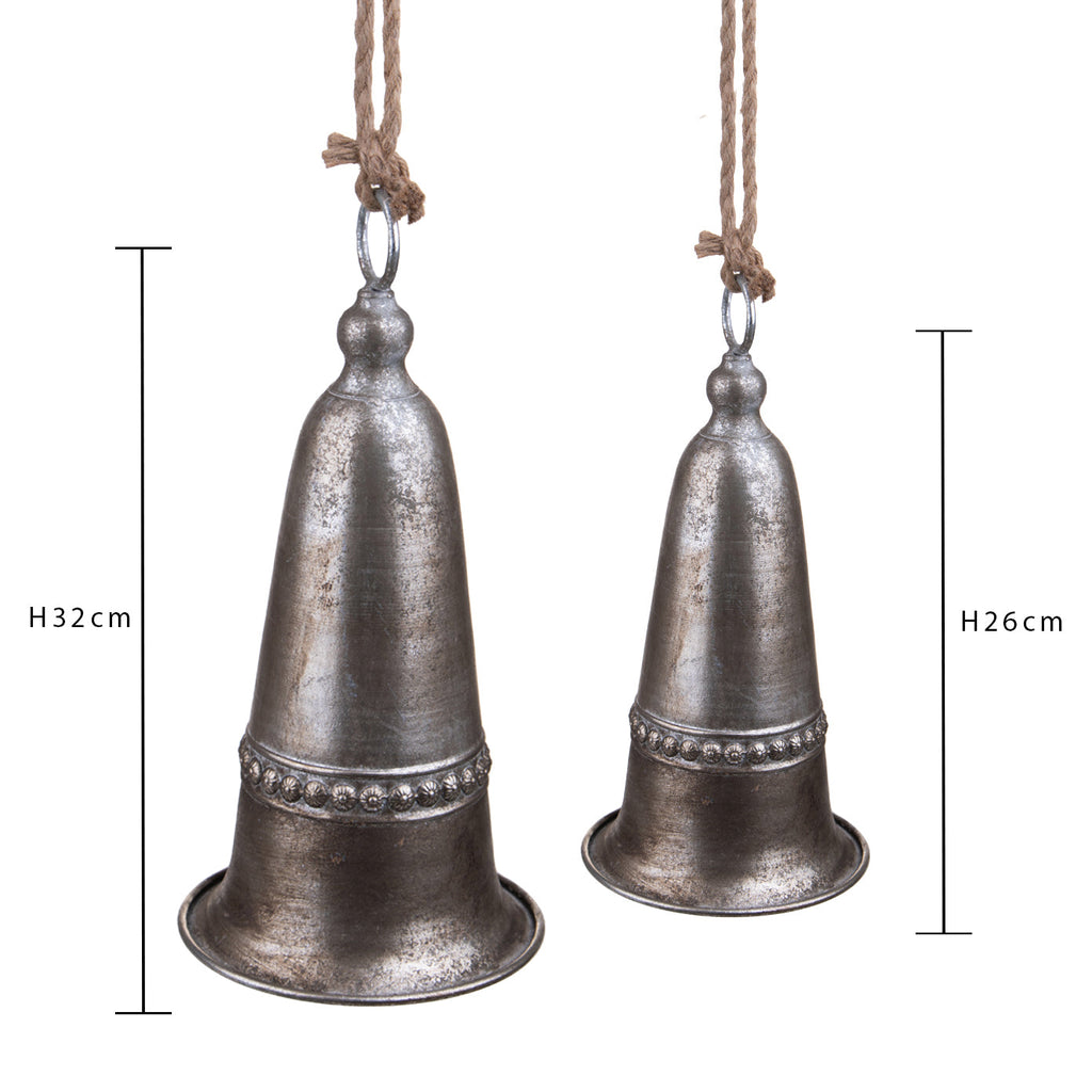 Lot de 2 Cloches avec Frise 32 cm Argent