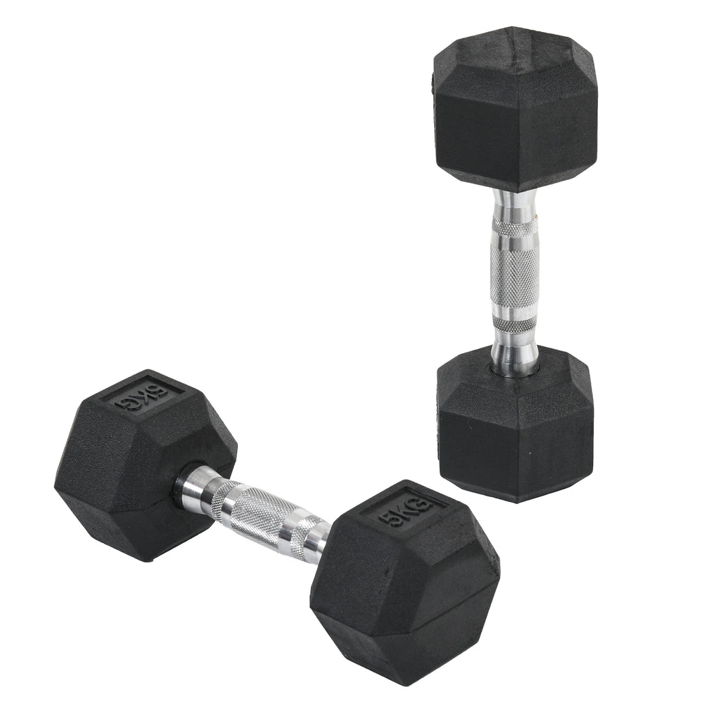 Set di 2 Manubri da Palestra Esagonali da 5kg in Gomma con Impugnatura Antiscivolo Nero
