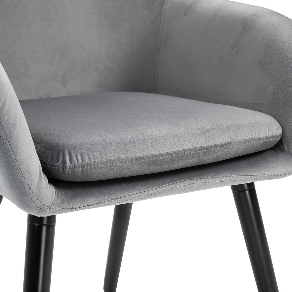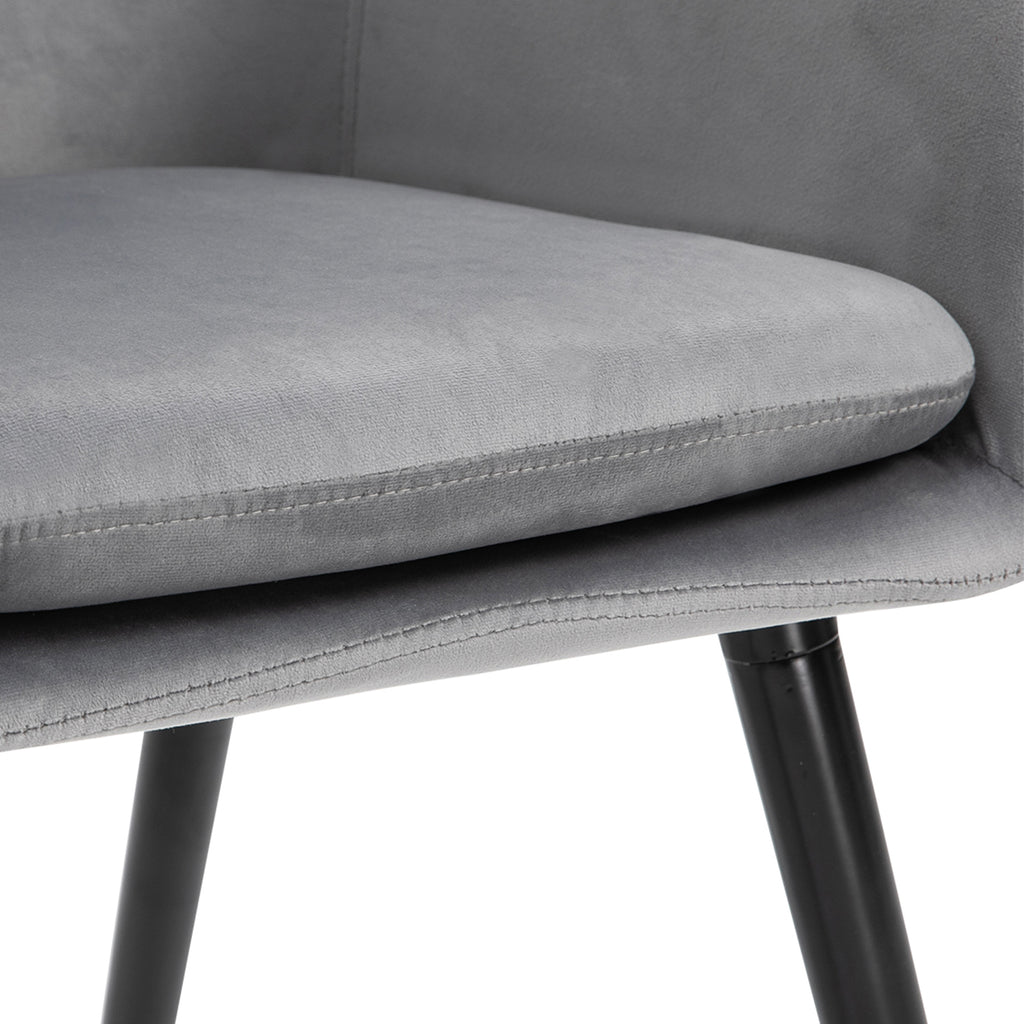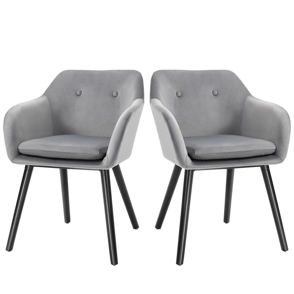Set di 2 Sedie per Sala da Pranzo con Braccioli Imbottite 54x56x74 cm in Velluto Grigio