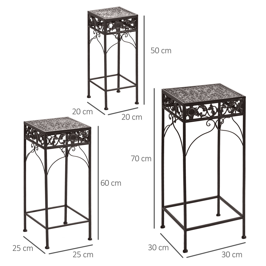 Ensemble de 3 tabourets classiques de support pour plantes en fer marron