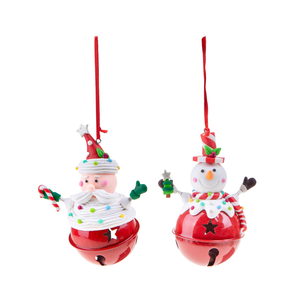 Lot de 4 Pères Noël avec Cloche 11 cm Rouge/Vert