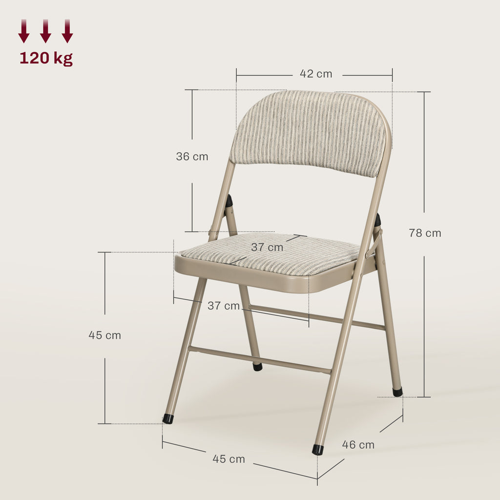 Set di 6 Sedie Pieghevoli Moderne 45x46x78 cm in Acciaio e Tessuto Effetto Lino Beige