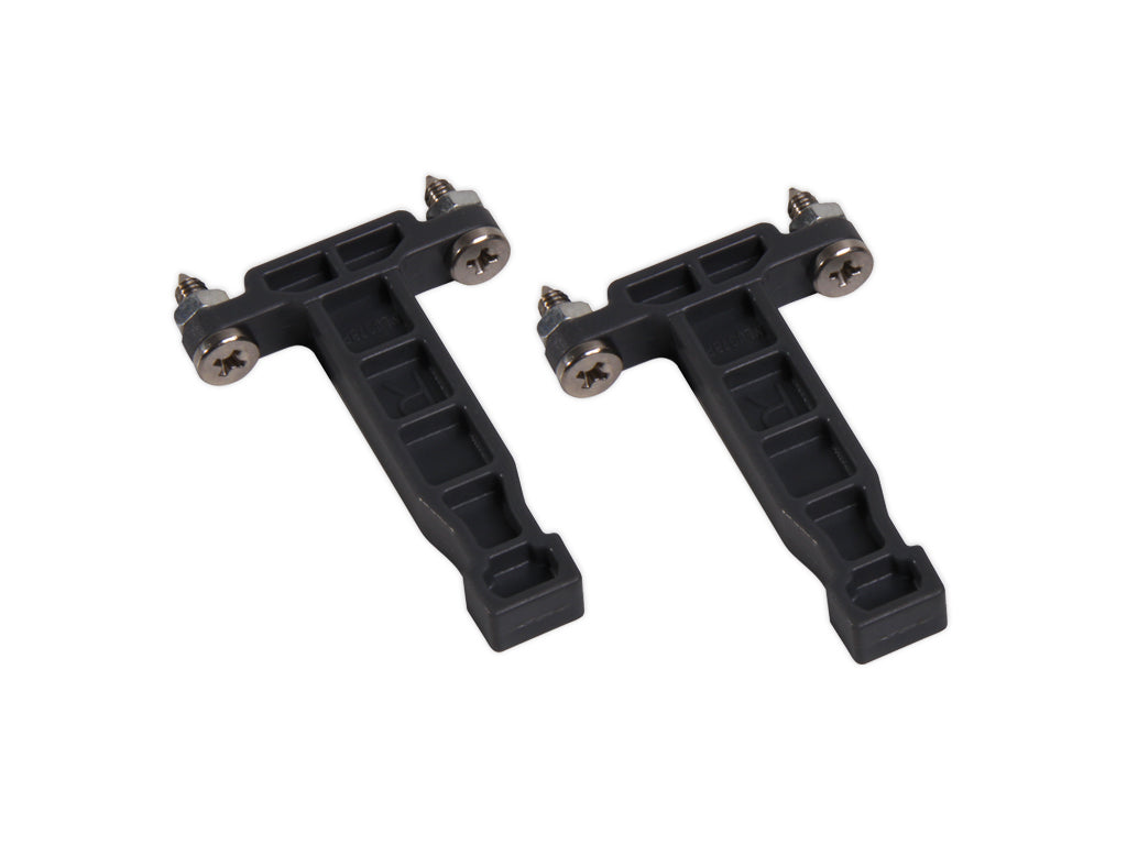 Ensemble de gabarits pour l'installation des loquets de façade de tiroir Vantage-Q . Avec ces formes, droite et gauche, nous assurons la position horizontale des crochets. Les trous sont positionnés dans les profils selon la direction et fournissent la position des crochets dans le trou.