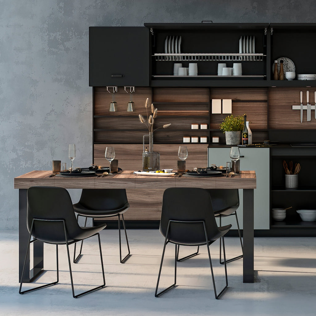 Le montage est très simple, il suffit de visser le pied au plateau de table à l'aide des vis incluses dans la livraison. Il comprend également des bouchons pour éviter les marques sur le sol. Les pieds sont en acier, peints en noir ou blanc .- Jeu de pieds fixes de forme rectangulaire.