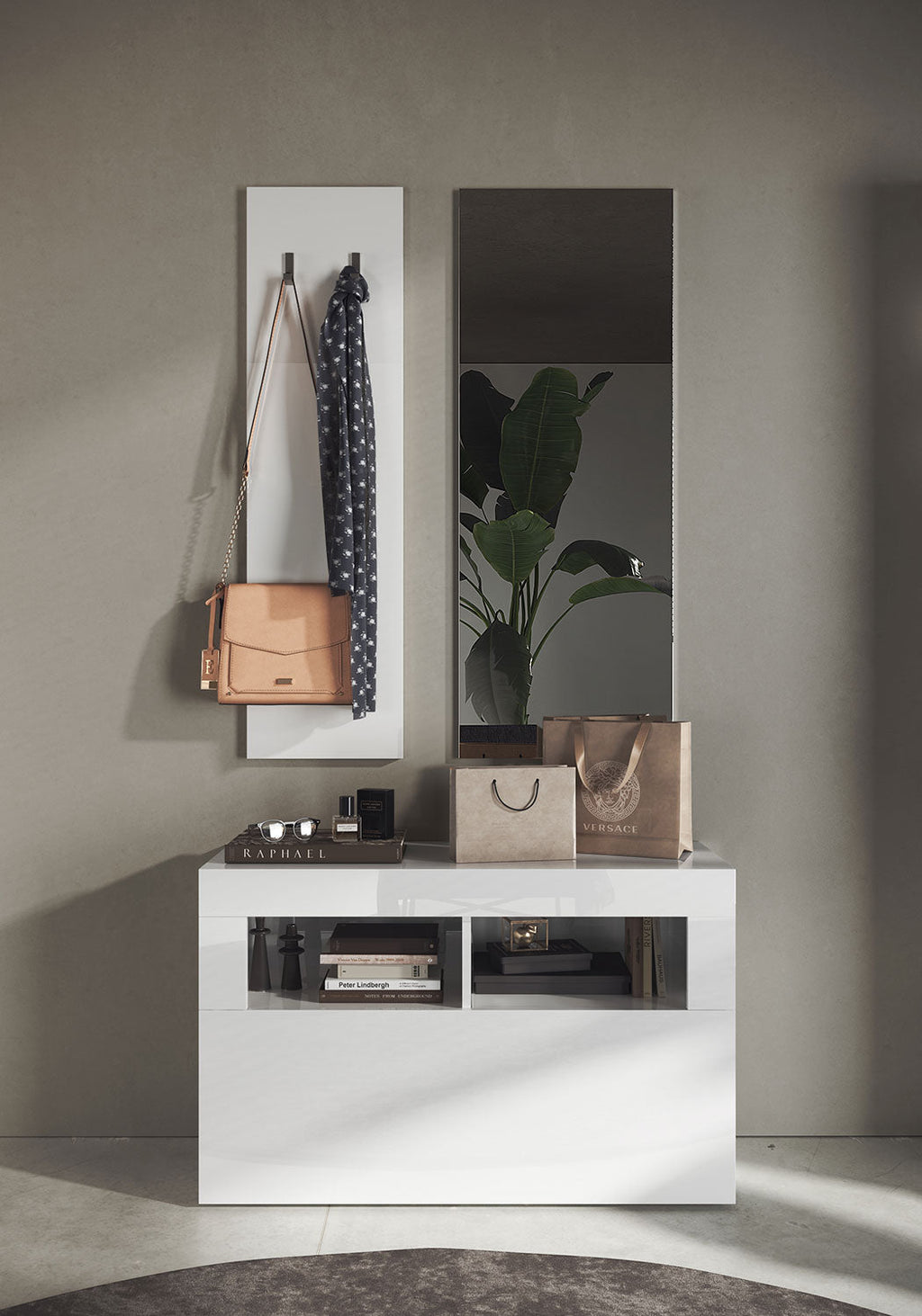 Set Ingresso Mobile 1 Anta a Ribalta Appendiabiti 91x36x165 cm e Specchio 50x110 cm Linea Basic Bianco Lucido