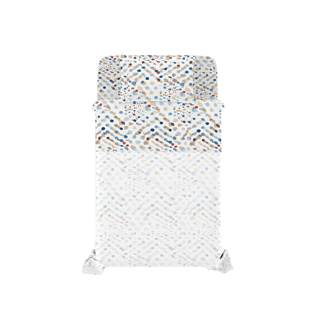 Rinnova il tuo letto con il completo letto River, un set completo e di alta qualità che include un lenzuolo sopra, un lenzuolo sotto con angolo elastico e federe coordinate. Disponibile in molte fantasie eleganti e moderne, questo completo è lavorato con cura in Italia, garantendo stile e durata. Il tessuto è composto dall’80% cotone e dal 20% di fibre miste riciclate, offrendo un comfort morbido e sostenibile. Perfetto per chi cerca un set letto pratico, eco-friendly e dal design ricercato.