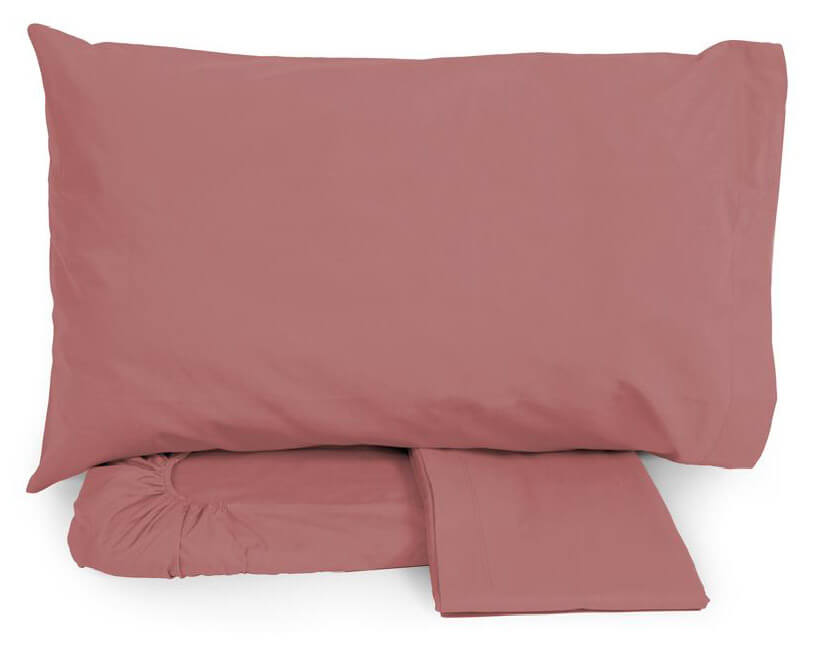 Ensemble de draps en coton dessus et dessous avec coins et taies d'oreiller Neith Silver Framboise