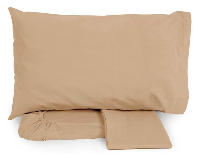 Ensemble de draps en coton dessus et dessous avec coins et taies d'oreiller Neith Silver Hazelnut Différentes tailles
