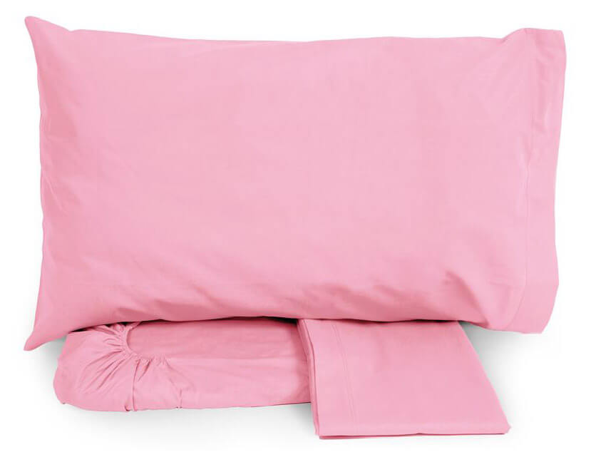 Ensemble de draps en coton dessus et dessous avec coins et taies d'oreiller Neith Silver Pink