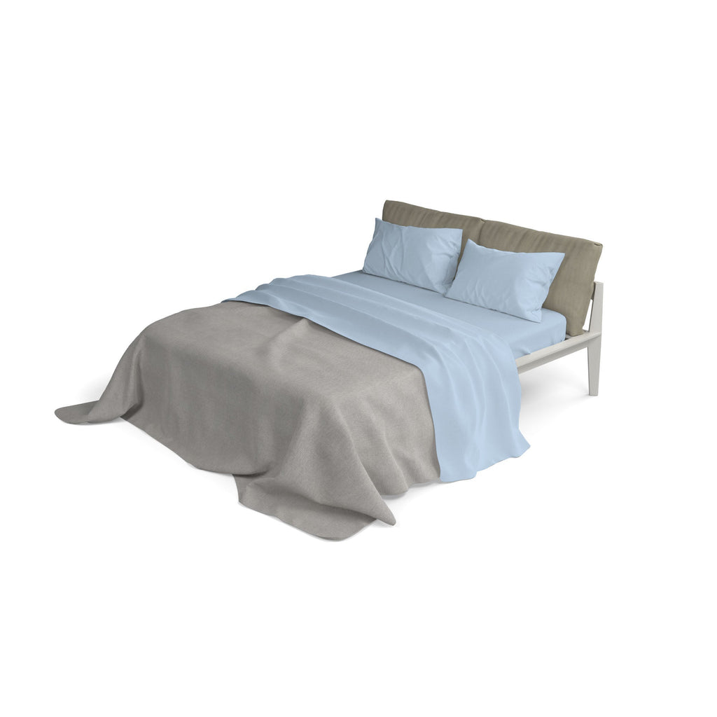 Parure de lit unie composée d'un drap de dessus, d'un drap de dessous et de taies d'oreiller. Fabriqué en coton fin, avec une attention particulière aux finitions et un processus de "finition" qui donne une brillance particulière aux couleurs et une haute résistance au lavage.