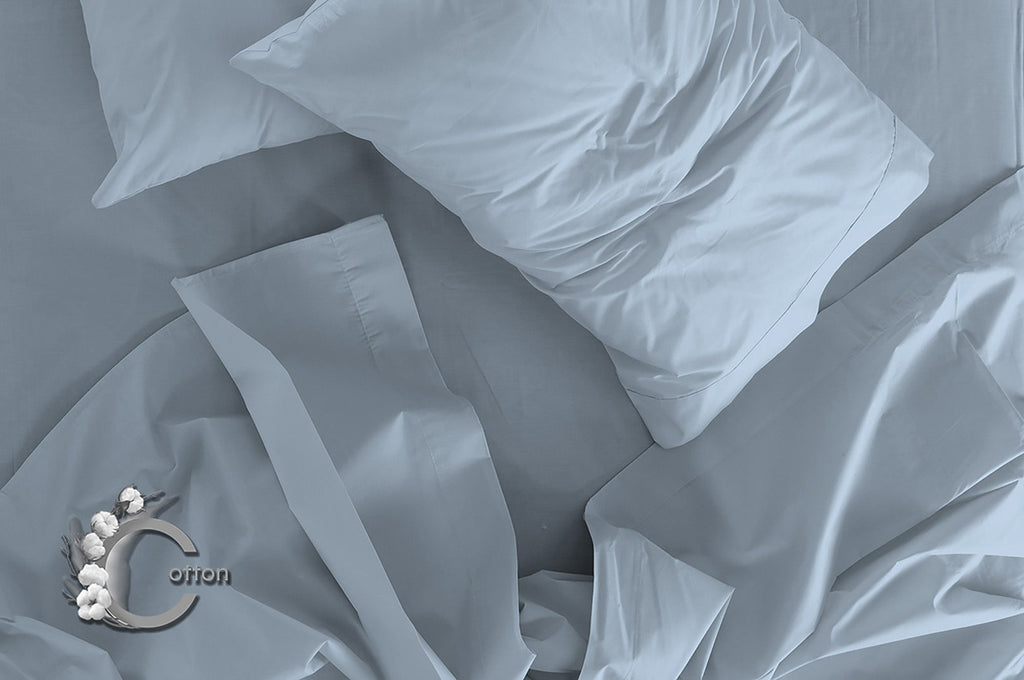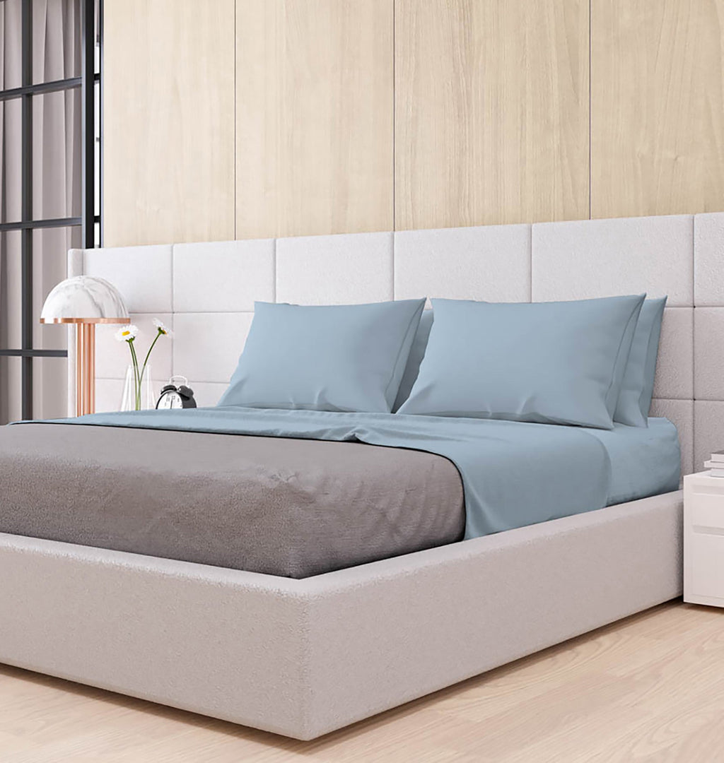 Ensemble de draps doubles dessus et dessous et taies d'oreiller couleur unie bleu