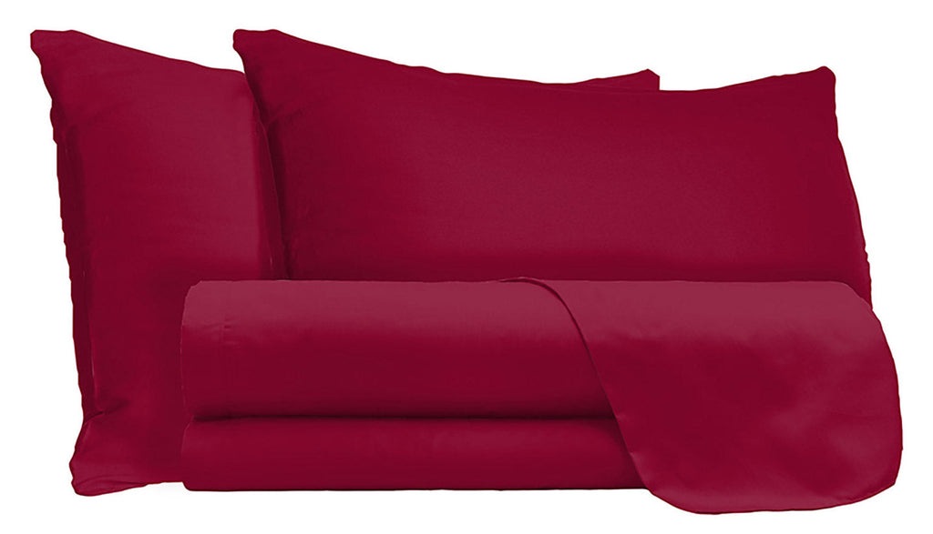 Ensemble de draps doubles dessus et dessous et taies d'oreiller bordeaux de couleur unie