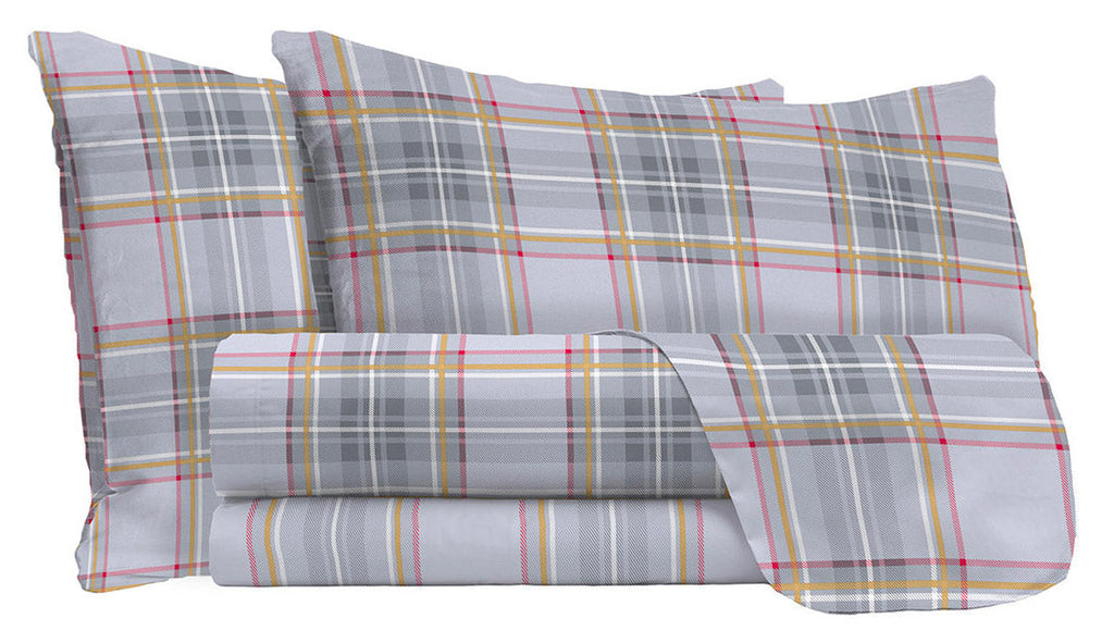 Il set è composto da lenzuolo sopra, lenzuolo sotto e federe. Studiato, assemblato e cucito interamente in Italia, realizzato in Cotone.