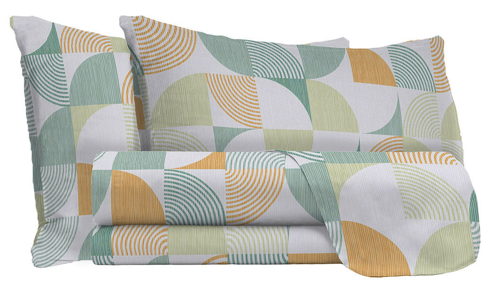 Set Lenzuola Matrimoniale con Stampa Sopra Sotto e Federe in Cotone Athena Giudi Verde