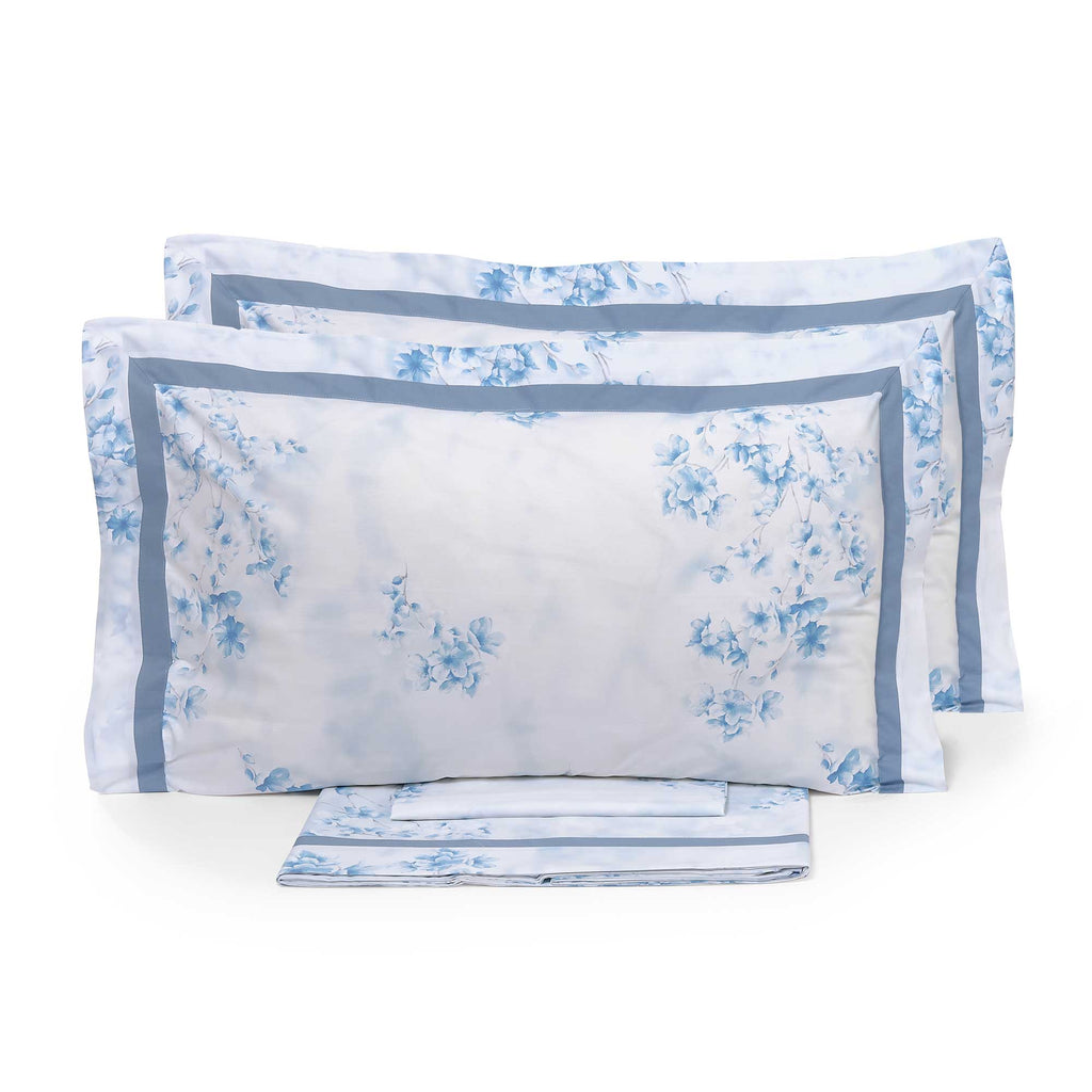 Ensemble de draps doubles dessus et dessous et taies d'oreiller en coton percale Garrini Michelle bleu clair