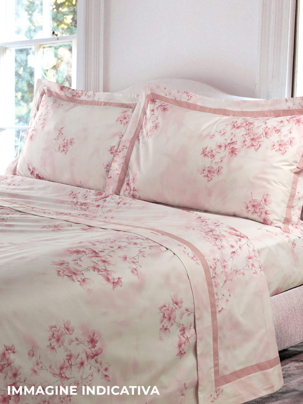 Parure de lit en percale pur coton 200 TC imprimée. Comprend : 1 drap de dessus, 1 drap-housse et 2 taies d'oreiller. Entièrement fabriqué et emballé en Italie selon la tradition textile artisanale toscane."
