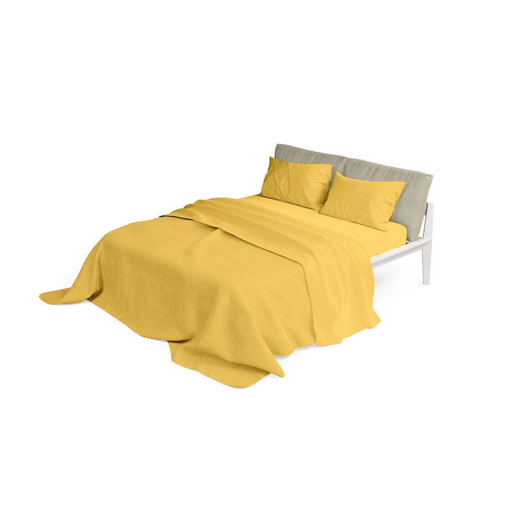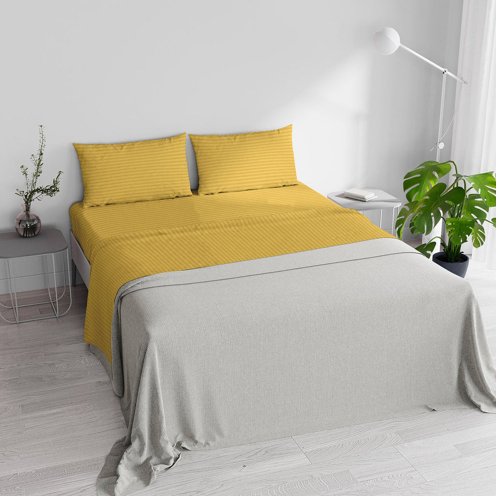 Parure de lit double avec dessus et taies d'oreiller en satin de polyester jaune