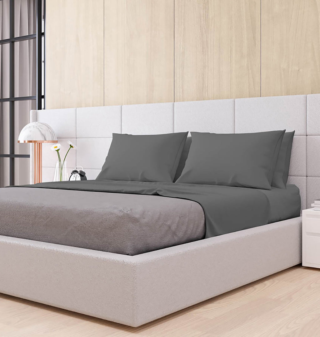 Ensemble de draps doubles au-dessus et en dessous et taies d'oreiller fumée de couleur unie