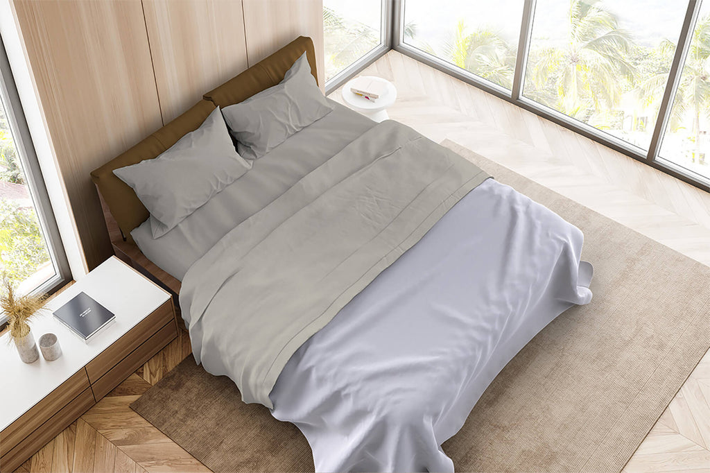 Ensemble de draps doubles dessus et dessous et taies d'oreiller couleur unie gris