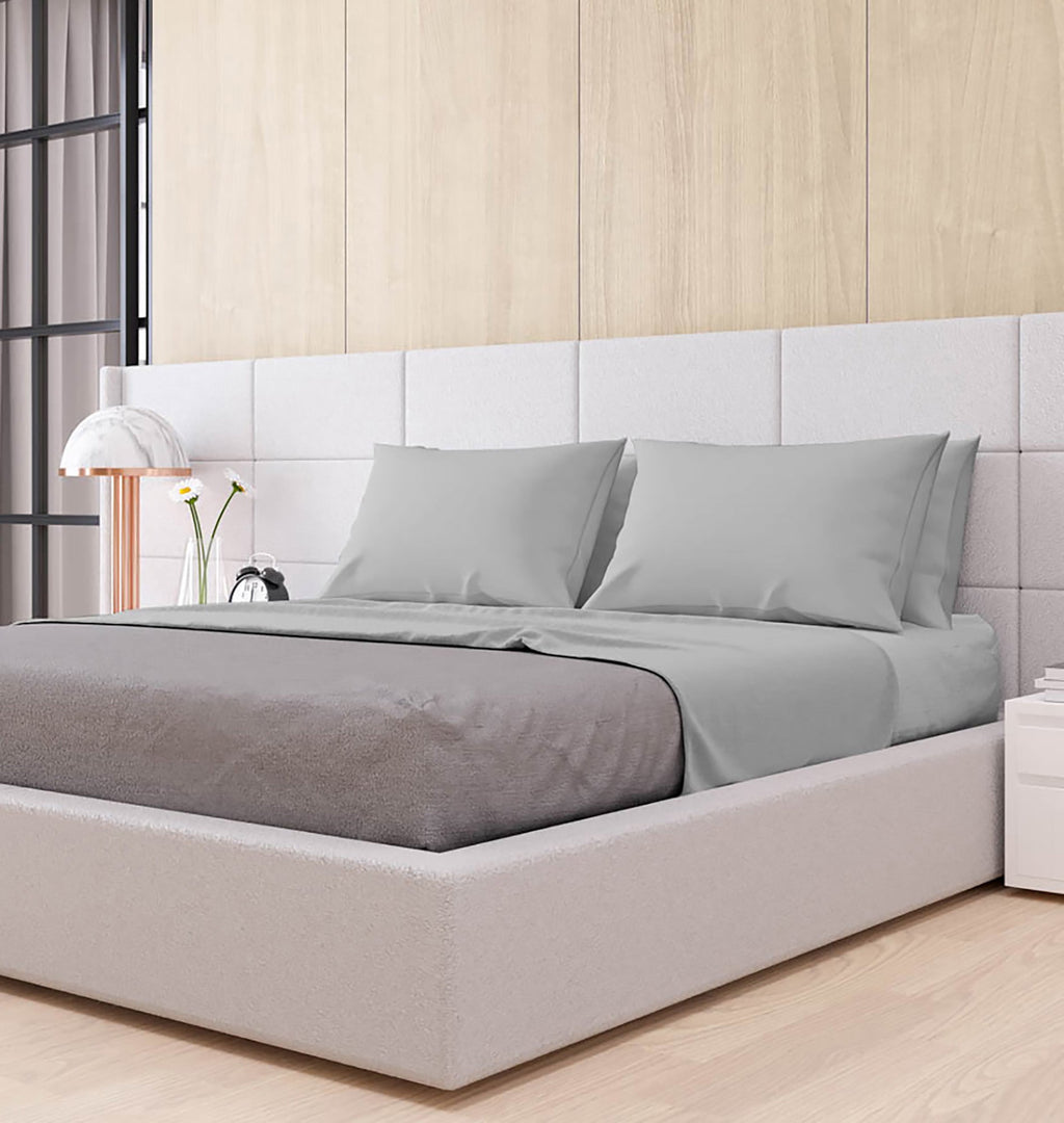 Ensemble de draps doubles dessus et dessous et taies d'oreiller couleur unie gris clair