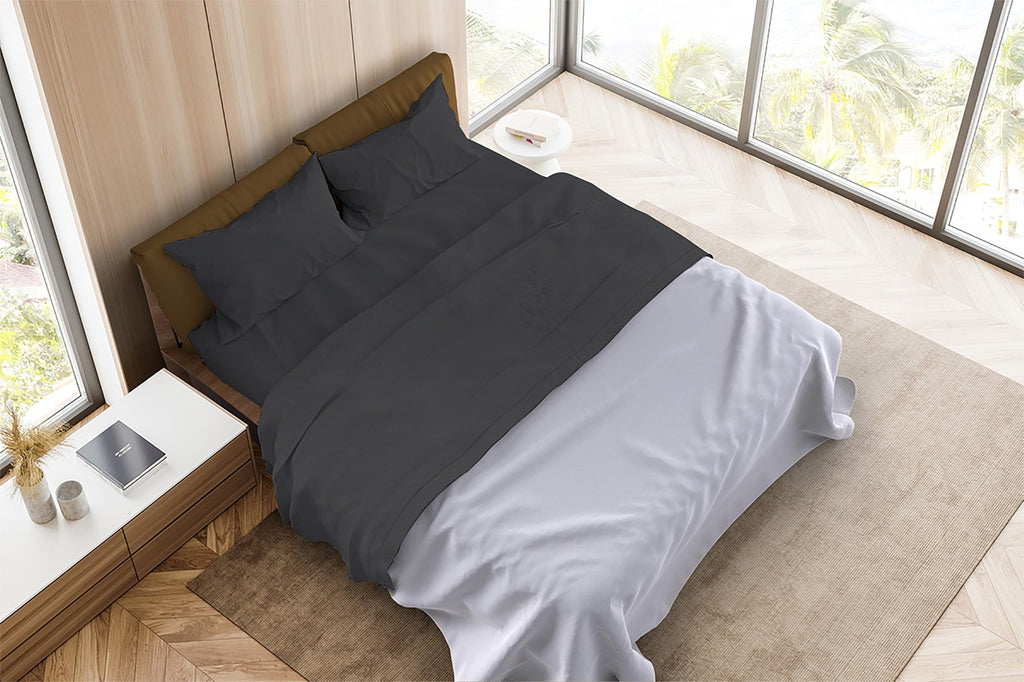 Ensemble de draps doubles dessus et dessous et taies d'oreiller couleur unie gris foncé