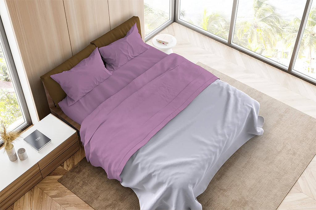 Ensemble de draps doubles dessus et dessous et taies d'oreiller couleur unie lilas