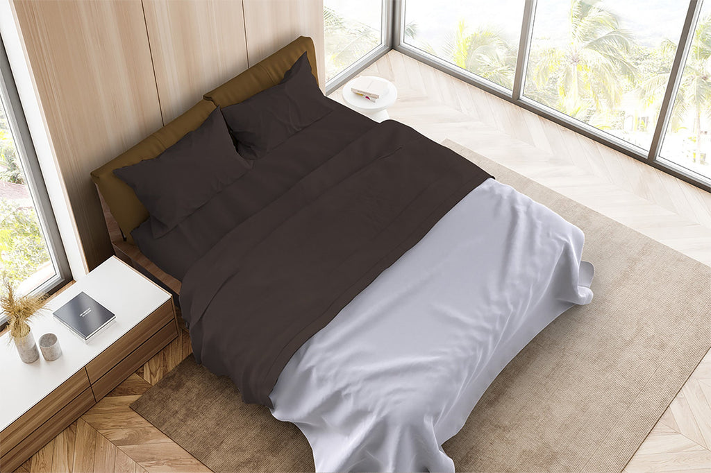 Ensemble de draps doubles dessus et dessous et taies d'oreiller de couleur unie marron