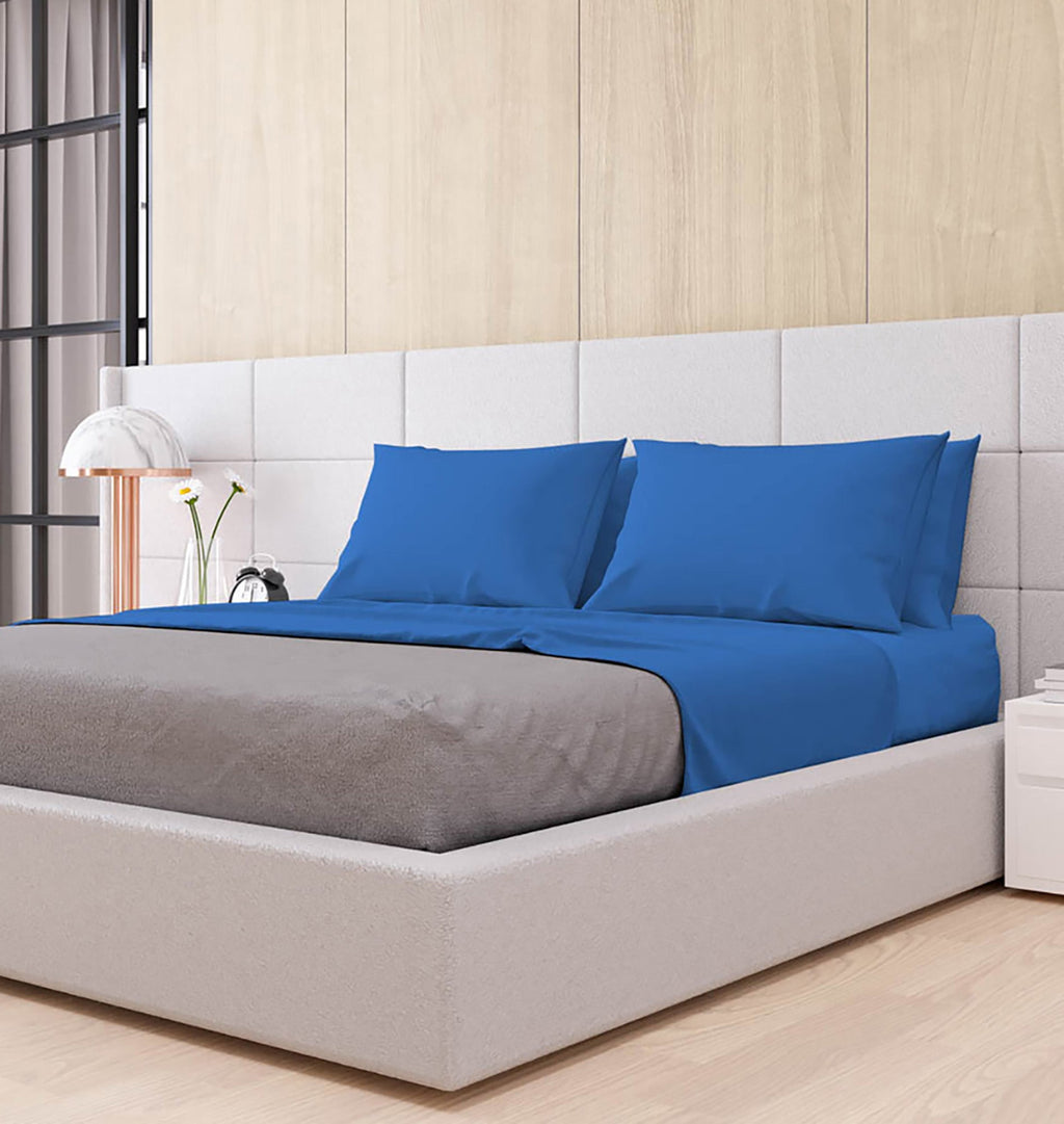 Ensemble de draps doubles au-dessus et en dessous et taies d'oreiller de couleur unie Royal
