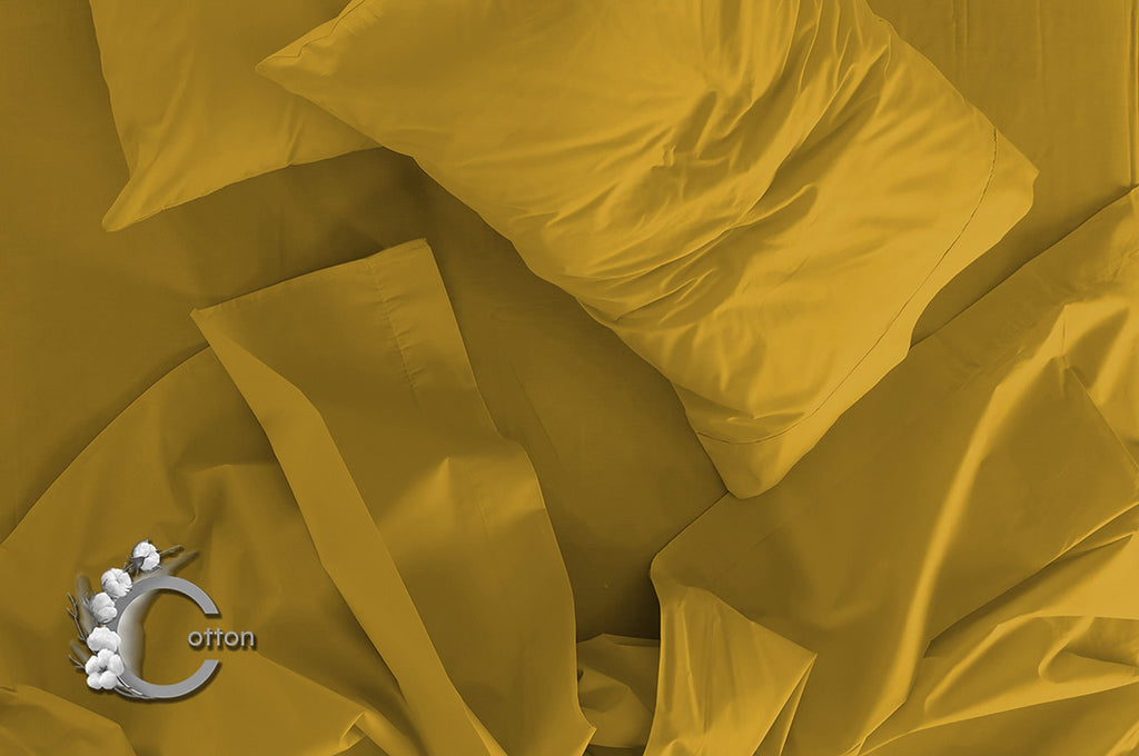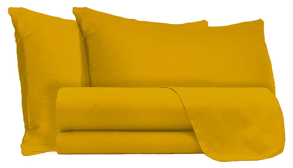 Ensemble de draps doubles dessus et dessous et taies d'oreiller de couleur unie moutarde