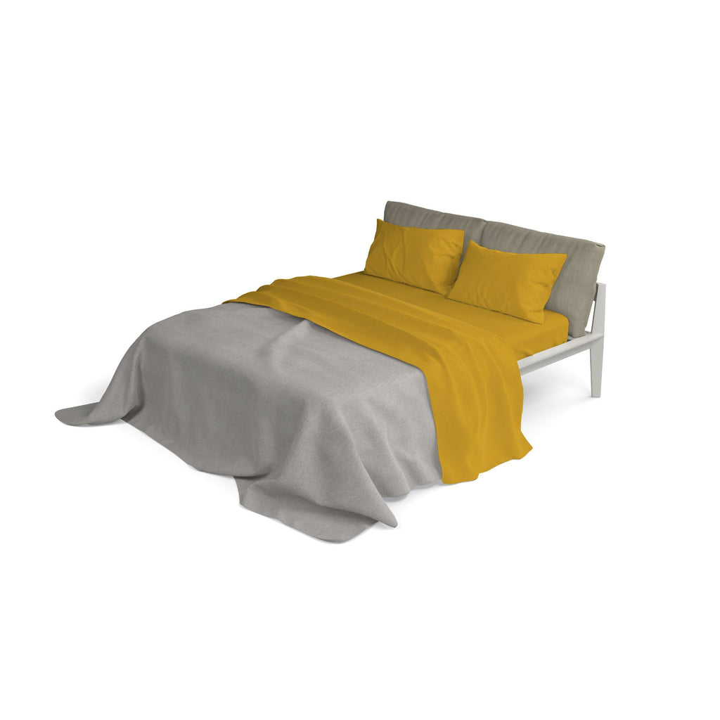 Parure de lit unie composée d'un drap de dessus, d'un drap de dessous et de taies d'oreiller. Fabriqué en coton fin, avec une attention particulière aux finitions et un processus de "finition" qui donne une brillance particulière aux couleurs et une haute résistance au lavage.