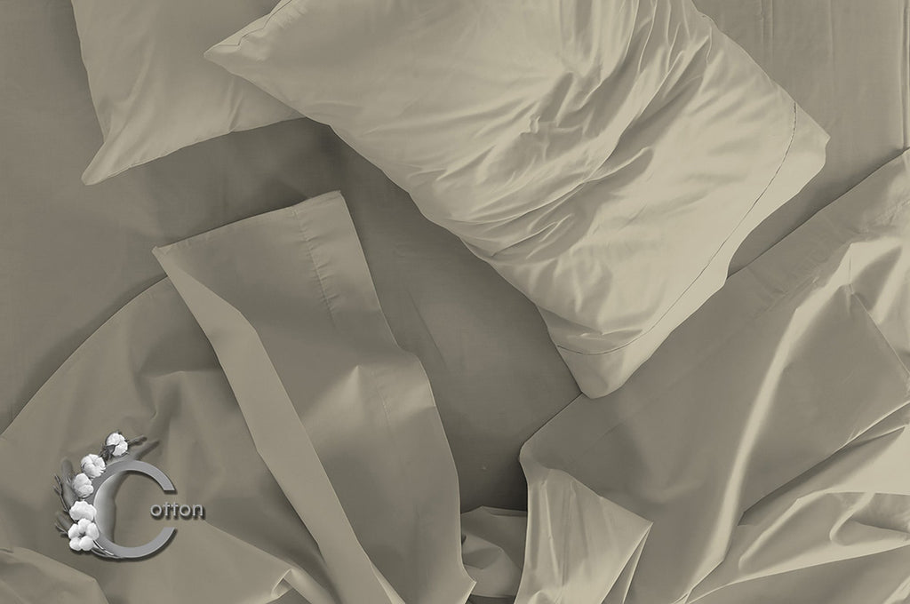 Ensemble de draps doubles dessus et dessous et taies d'oreiller gris tourterelle