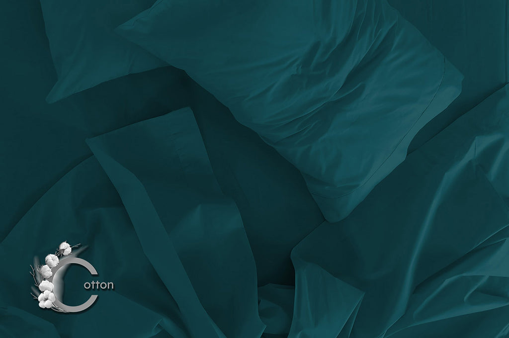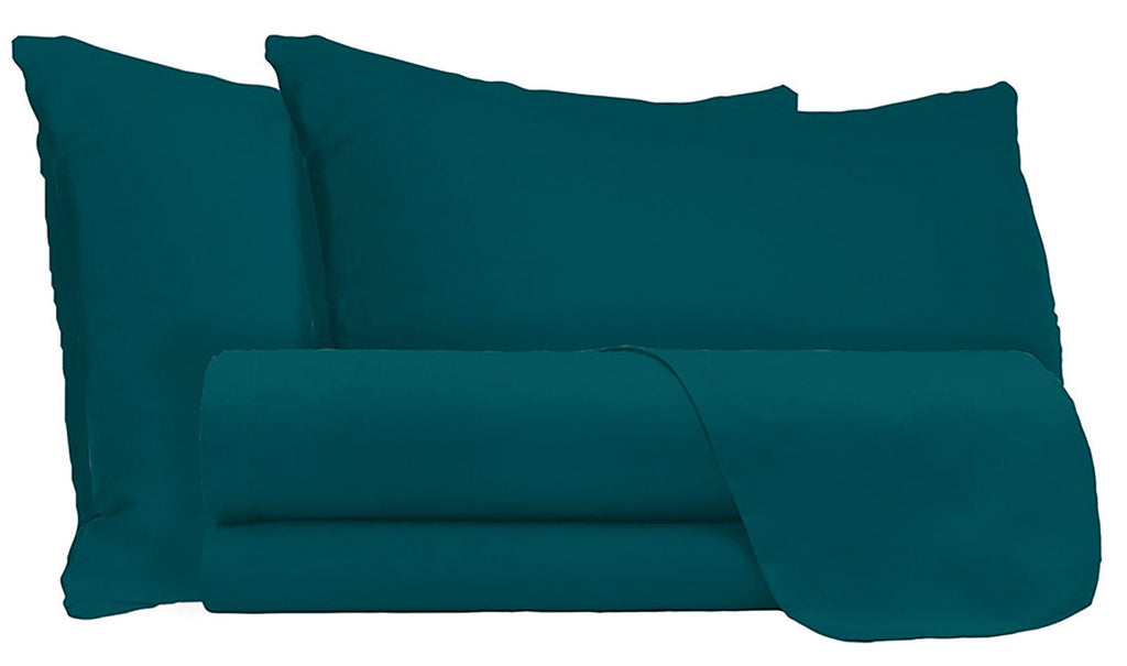 Ensemble de draps doubles dessus et dessous et taies d'oreiller unies vert pétrole