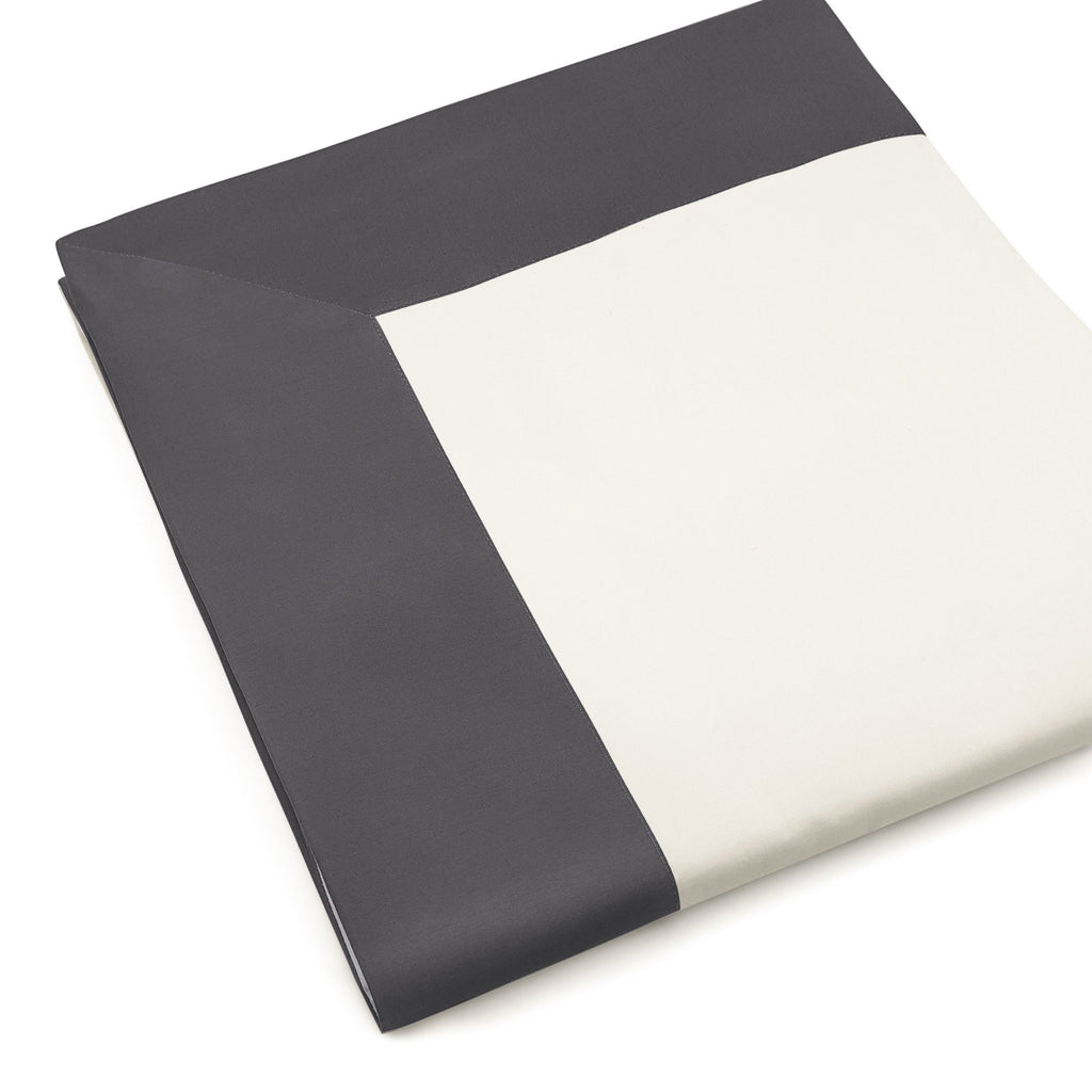 Parure de draps et taies d'oreiller en pur coton avec volant en satin 300 fils Mitera Diamante Grisaglia