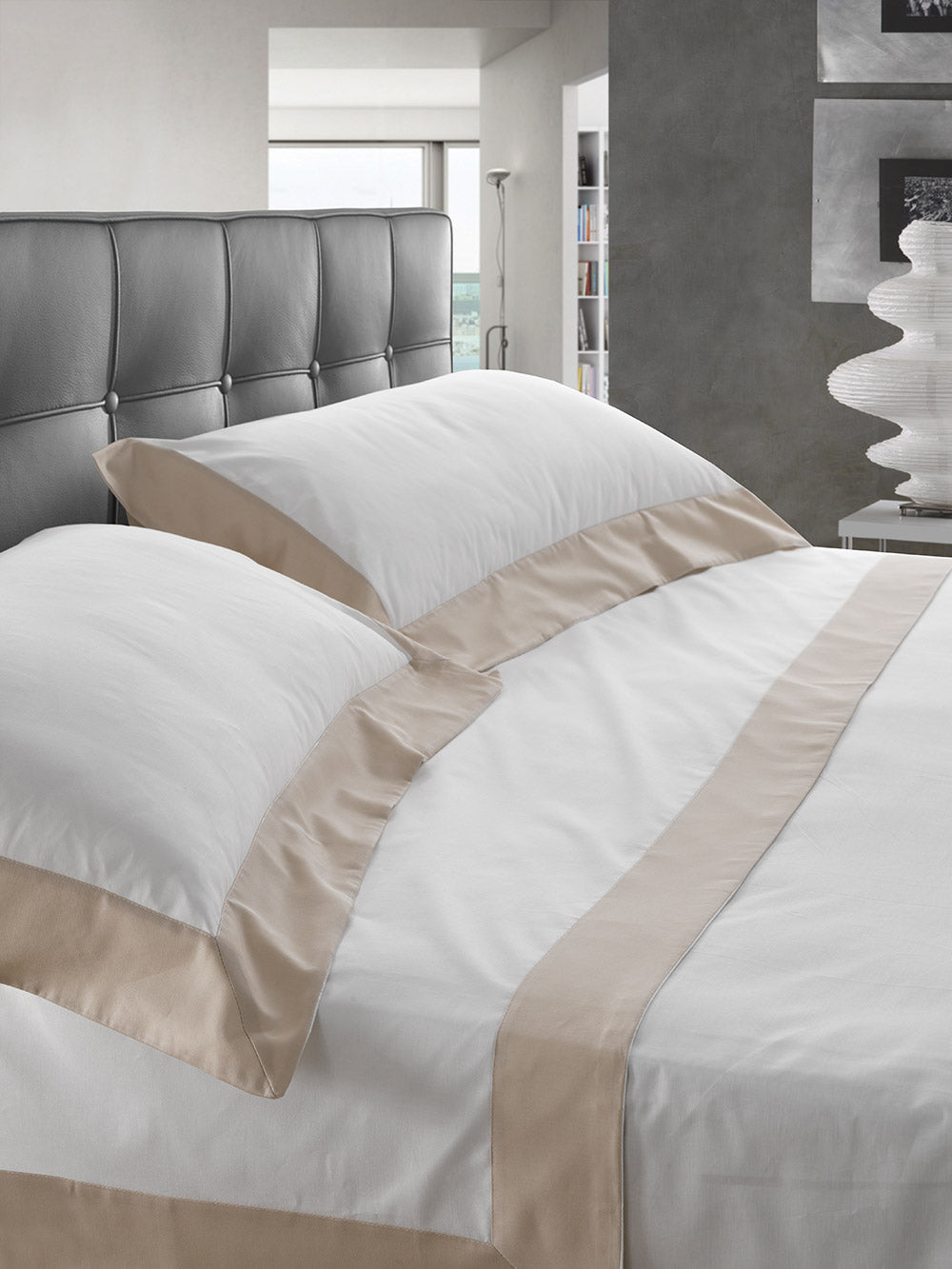 Ensemble de draps et taies d'oreiller en pur coton avec volant en satin 300 fils Mitera Diamante Prisma