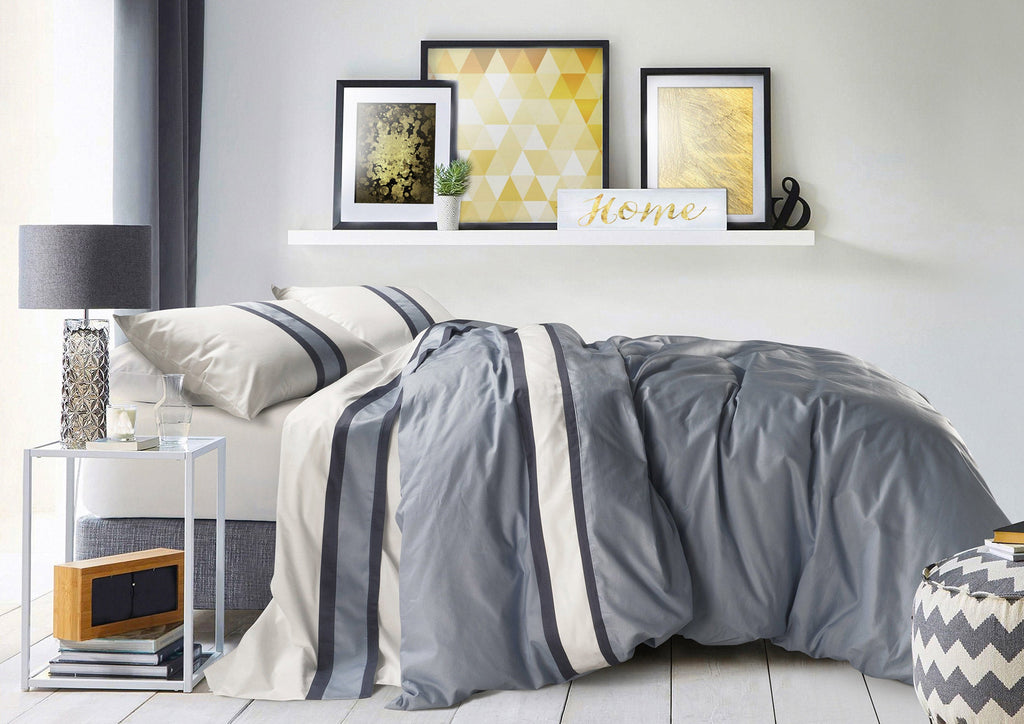 Parure de Draps et Taies d'Oreiller en Pur Coton Volant Satin Mitera Polynesia Huître et Grisaille