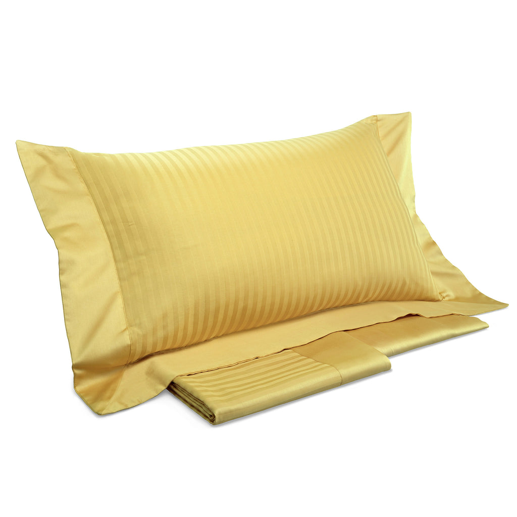 Parure de lit en pur satin de coton rayé, 300 fils . L'ensemble se compose d'un drap de dessus, d'un drap de dessous avec coins et de 2 taies d'oreiller d'une couleur élégante qui rehausse l'éclat du plus fin pur coton rayé .