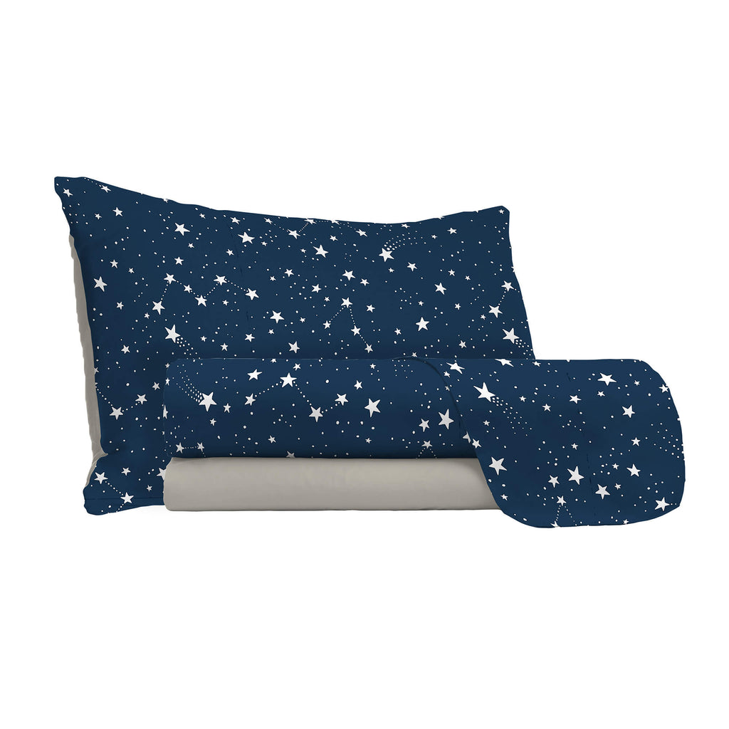 - Double : Haut 240x270 cm + Bas 170x200 cm + coin avec élastique 25 cm + 2 taies d'oreiller 50x80 cm + rabat intérieur