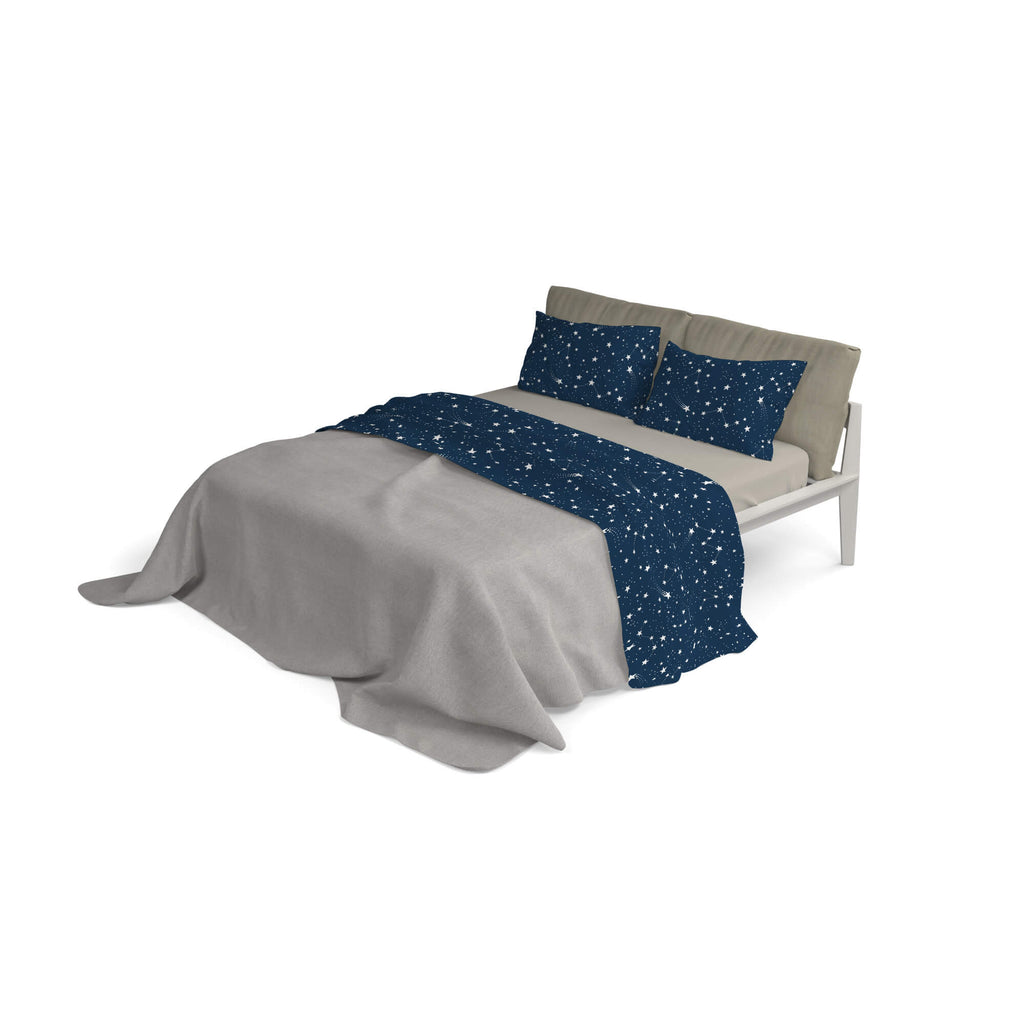 Parure de lit en microfibre imprimée. Produit fourni avec drap de dessus, drap de dessous et taies d'oreiller avec la certification Oeko tex qui garantit le respect de la nature et l'absence totale de substances nocives pendant tout le processus de production. Article fabriqué en Italie.