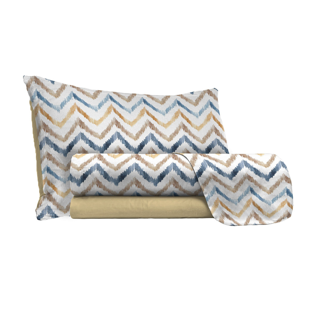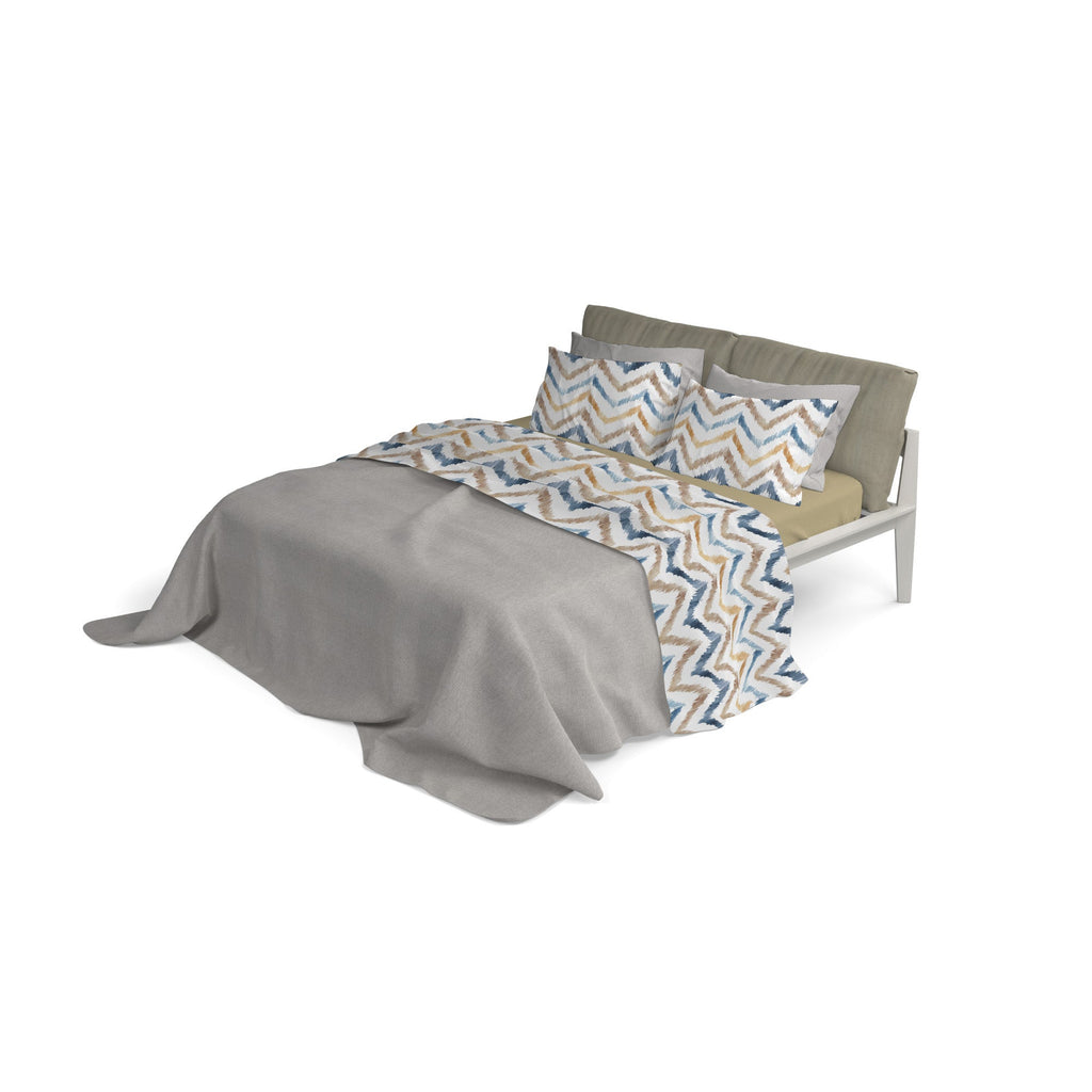 L'ensemble se compose d'un drap de dessus , d'un drap de dessous et de taies d'oreiller . Étudié, assemblé et cousu entièrement en Italie , en microfibre , équipé de finitions précises et de finitions facilitant le repassage. Toutes ces caractéristiques font de cet ensemble un produit très demandé en raison de son élégance et de sa simplicité. Les imprimés sont testés pour résister à de longs lavages tout en gardant les couleurs vives.