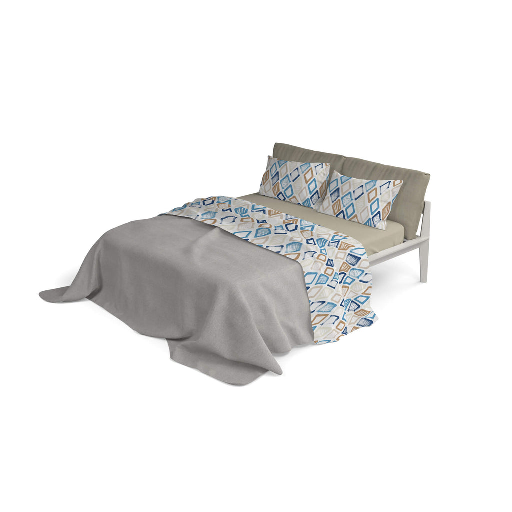 L'ensemble se compose d'un drap de dessus , d'un drap de dessous et de taies d'oreiller . Étudié, assemblé et cousu entièrement en Italie , en microfibre , équipé de finitions précises et de finitions facilitant le repassage. Toutes ces caractéristiques font de cet ensemble un produit très demandé en raison de son élégance et de sa simplicité. Les imprimés sont testés pour résister à de longs lavages tout en gardant les couleurs vives.