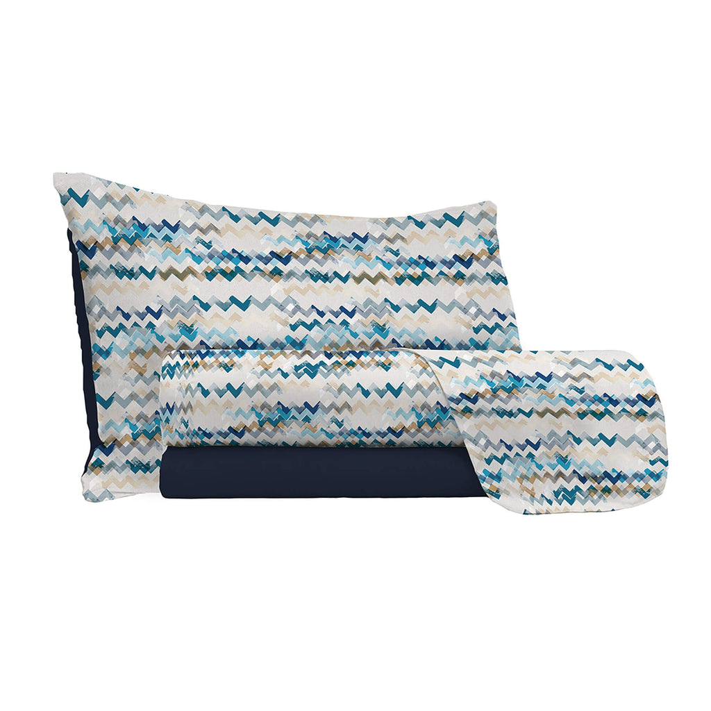 L'ensemble se compose d'un drap de dessus , d'un drap de dessous et de taies d'oreiller . Étudié, assemblé et cousu entièrement en Italie , en microfibre , équipé de finitions précises et de finitions facilitant le repassage. Toutes ces caractéristiques font de cet ensemble un produit très demandé en raison de son élégance et de sa simplicité. Les imprimés sont testés pour résister à de longs lavages tout en gardant les couleurs vives.