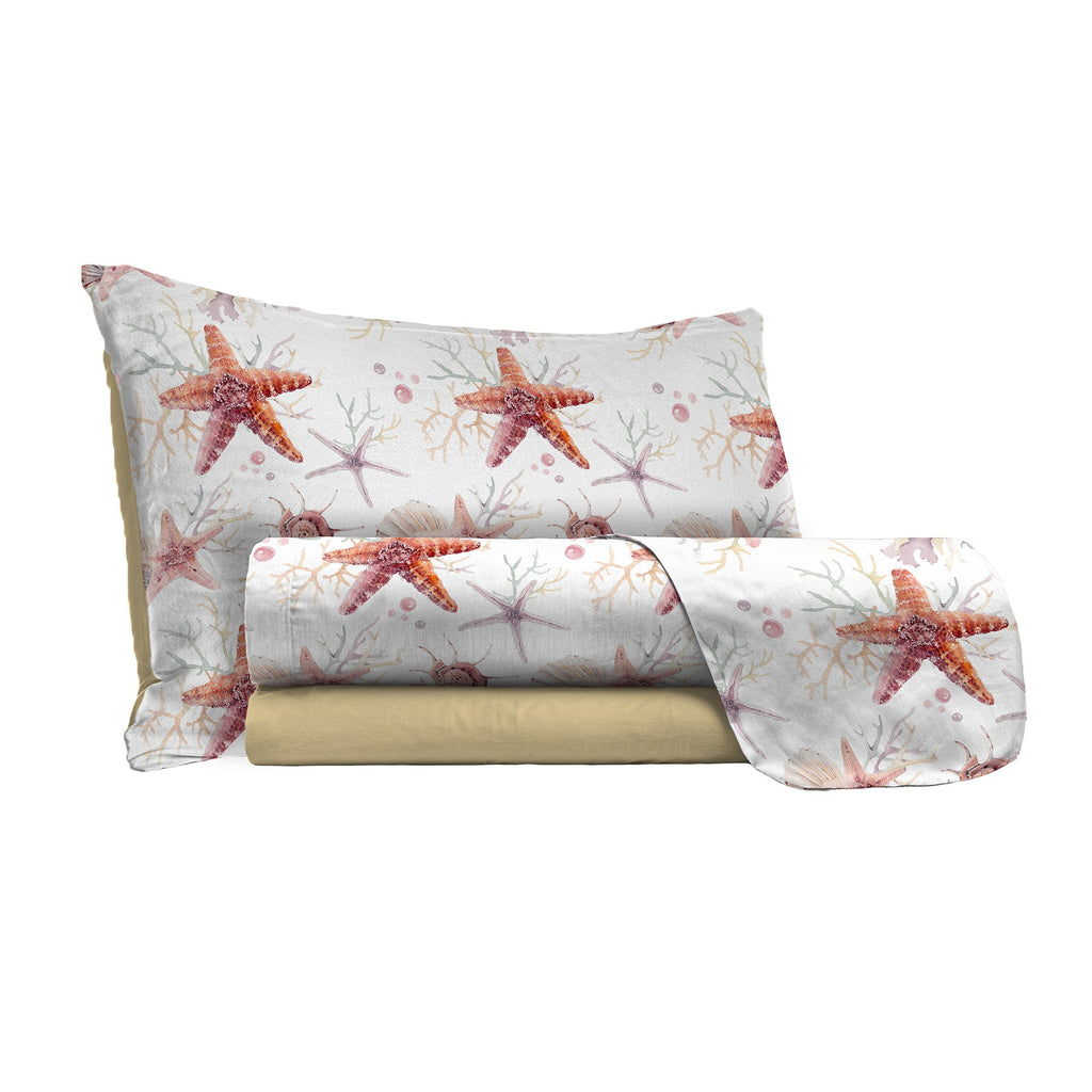 Parure de lit simple avec impression au-dessus et en dessous et taies d'oreiller Startfish