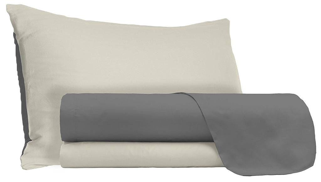 Set de Draps et Taies d'Oreiller Double Face Fumée/Crème