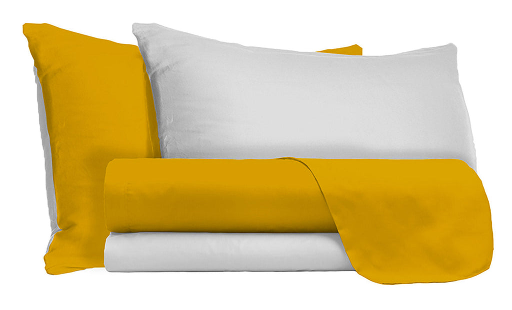 Ensemble de draps et taies d'oreiller double face moutarde/gris clair