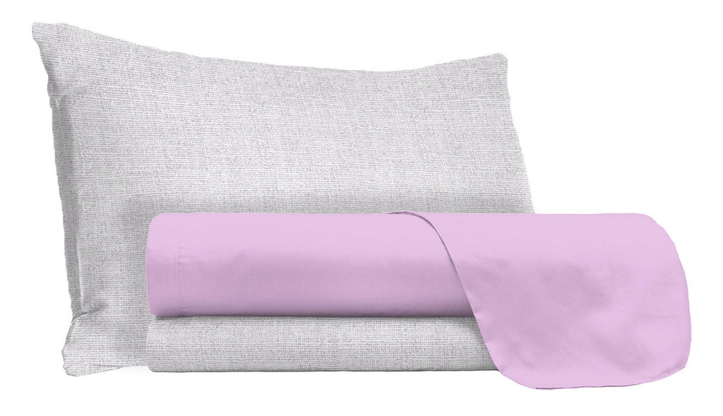 Ensemble de draps et taies d'oreiller en coton lilas différentes tailles