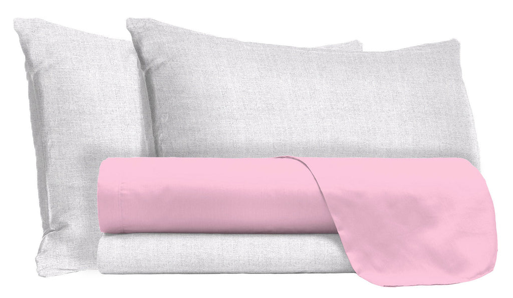 Ensemble de draps et taies d'oreiller en coton rose différentes tailles