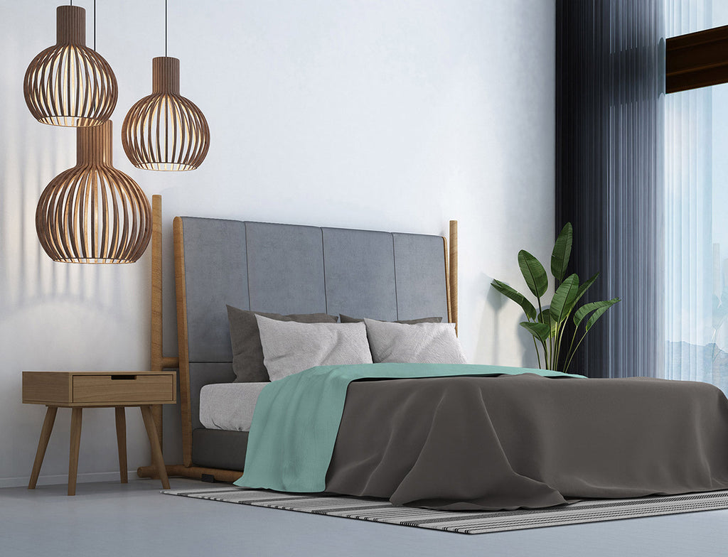 Parure de lit et taies d'oreiller en coton vert d'eau