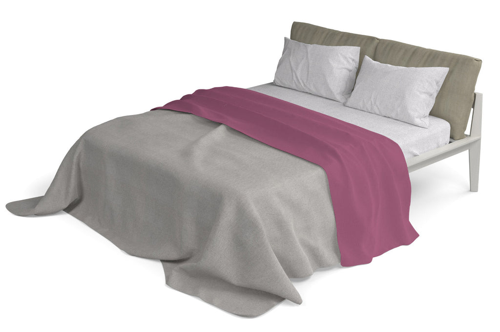 Parure de lit avec drap de dessous et taies d'oreiller gris et drap de dessus coloré. Article fabriqué en Italie, 100% coton avec certification Oeko-Tex.